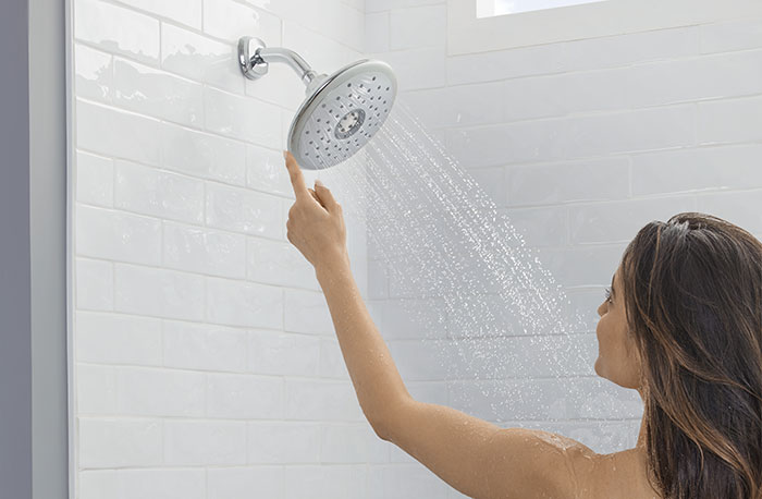The Spectra+ Touch showerhead from American Standard features industry-first technology that allows the user to change spray patterns with the simple touch of a finger on the outside ring of the fixture itself. This showerhead is offered in a standard 2.5 gpm model or a water-saving 1.8 gpm option that is WaterSense certified and CalGreen compliant.