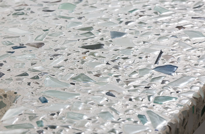 Made from an artistic blend of recycled glass, Vetrazzo‘s new Sea Pearl finish has the look and feel of a beach glass jewel. It has the texture of a worn piece of sea glass but with an opalescent quality of a pearl, like bubbles rising to the surface of sand under the surf.