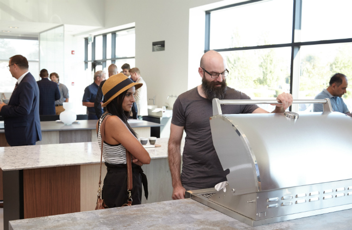 The celebration kicked off with an official ribbon cutting ceremony led by senior representatives of the Cosentino Group including: Jesús Carreño Carrillo, general manager – British Columbia; Brandon Calvo, chief operating office, Cosentino North America; Eduardo Cosentino, executive vice president global sales for Cosentino Group and CEO of Cosentino North America; Massimo Ballucchi, executive director of marketing for Cosentino North America and Philip Eeles, regional director of distribution, Cosentino Northern Region.