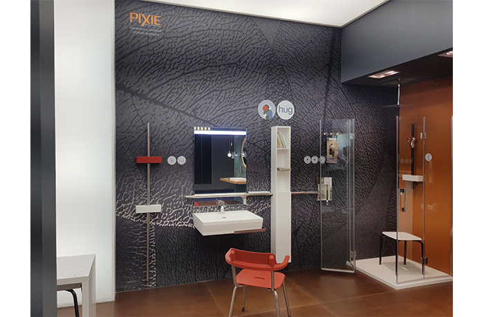 The HUG collection also features shower seats and cabinets with built-in grab bars, and the company will also provide information on its new accessible shower enclosures.