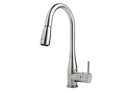 Symmons Industries new Sereno kitchen faucet would look at home in a transitional-to-contemporary home.
