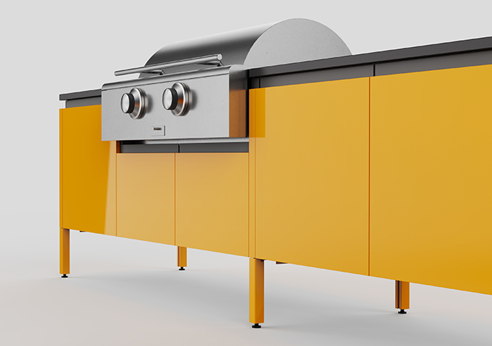 Brown Jordan Outdoor Kitchens: Elements is the brand’s collaboration with architect and designer Daniel Germani. The modular, furniture-inspired collection empowers outdoor living spaces for any footprint, with a variety of sizes and appliance options available. Built to withstand any climate, Elements consists of stainless-steel modules and is available in dozens of powder coat finishes, including a yellow similar to Pantone‘s Color of the Year 2021 selection.