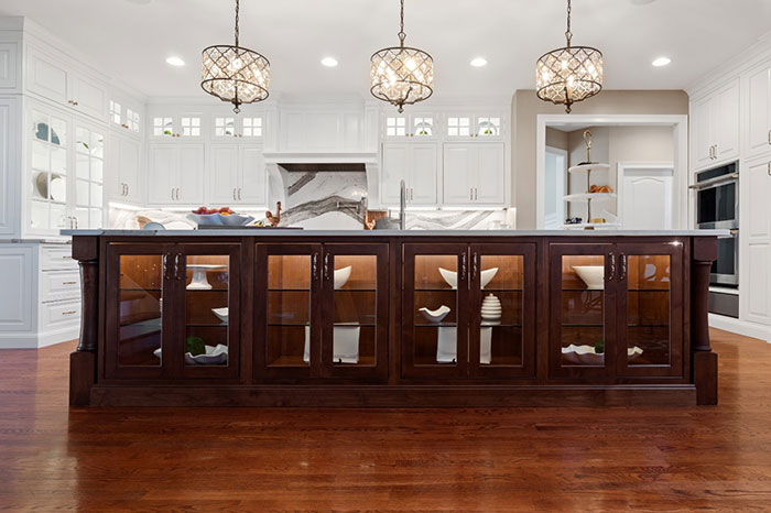 Coming in second place for a prize of $2,000 was Kelly Fanta with a kitchen that utilized upper cabinet LED Tape Lighting and the Lighted Power Strip to protect the ornate backsplash. The display island’s unique wood paneling was also protected by Fanta’s use of the Angle Power Strip.