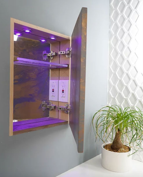 “A really neat tech-enabled product is the CleanCabinet – it’s a medicine cabinet that is built into your space (they also offer decorative ways to disguise the cabinet) that has a smart UV light that sanitizes your toothbrush and other toiletries! It’s Wi-Fi enabled and can be programmed to sanitize on a schedule.” – Michelle Fee, Change Your Bathroom