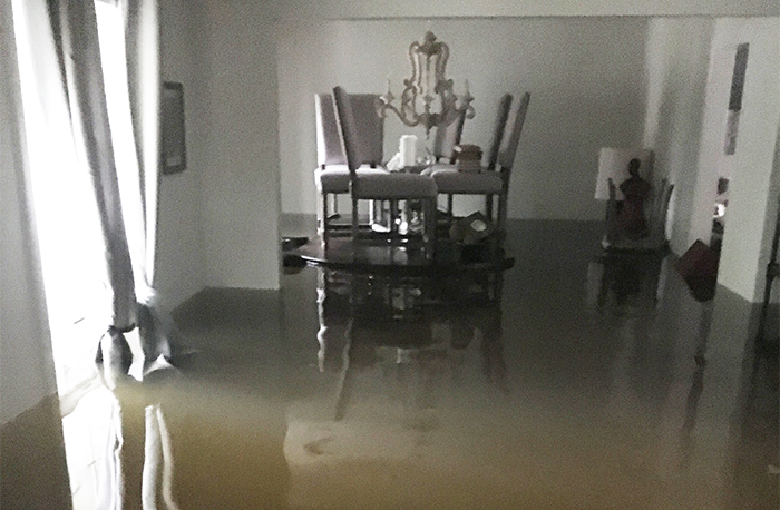 It was 2:30 a.m. when we heard the toilets backing up. We both rushed out of bed and looked out the window to find water starting to come up to our lawn. One would immediately think to wake up your kids, get them in the car and drive off, but that’s not possible when you see your car halfway full of water in your driveway.