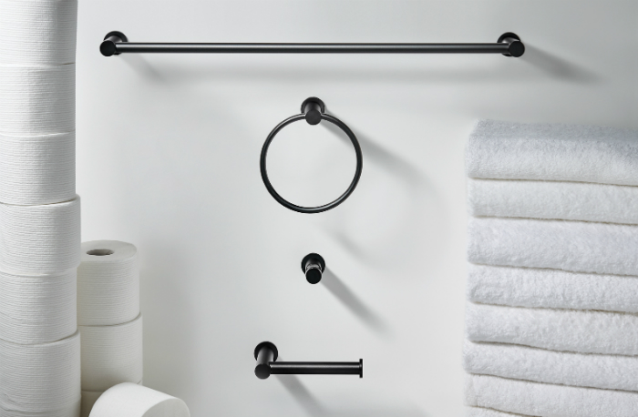 The Hopewell Bath Collection is available in flat black finish.
