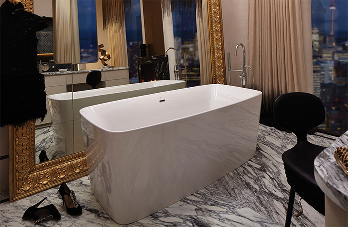 “The DXV Modulus collection’s user experience is impressive,” noted Alfano. “The vanity tray fits perfectly on top of the lavatory, on top of the floating drawer or even inside it. There’s thoughtfulness to the design.”