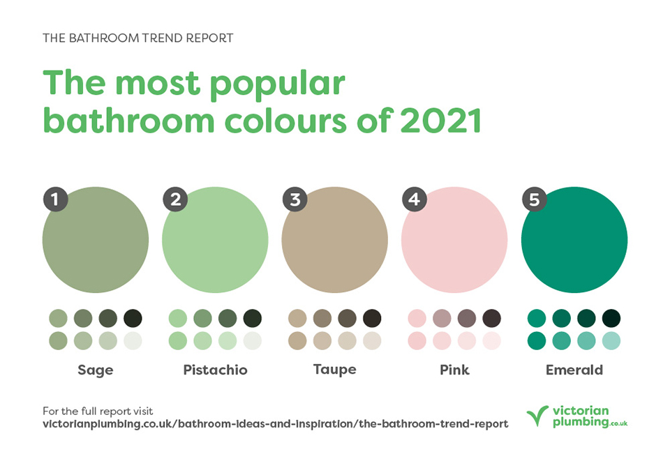 The 2021 bathroom color choices can dictate everything, from the style of bath you have to the choice of towels you buy. At the moment, earthy tones are dominating, with sage and pistachio being the two colors that have increased the most in popularity.