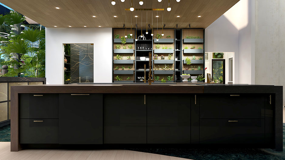 Growing Food in the Kitchen. “We were asked to create a kitchen and solarium space that was not only beautiful and functional but could also grow food to create a fully sustainable kitchen for our clients. We wanted the space to fully envelope our clients and provide a space of comfort, creativity, life and function. We were given a brief when we started the project of who would be living in this house. Our virtual clients are Shy and Garrett Morris. Shy was born in China and comes from a family of ancient Chinese medicine. She is a doctor herself, and she and her husband have three children. Garrett Morris is also a doctor and comes from a background of sustainability in farming. They wanted a home that would allow their large family to gather, create and enjoy a space that would truly nourish them.” – Lovato