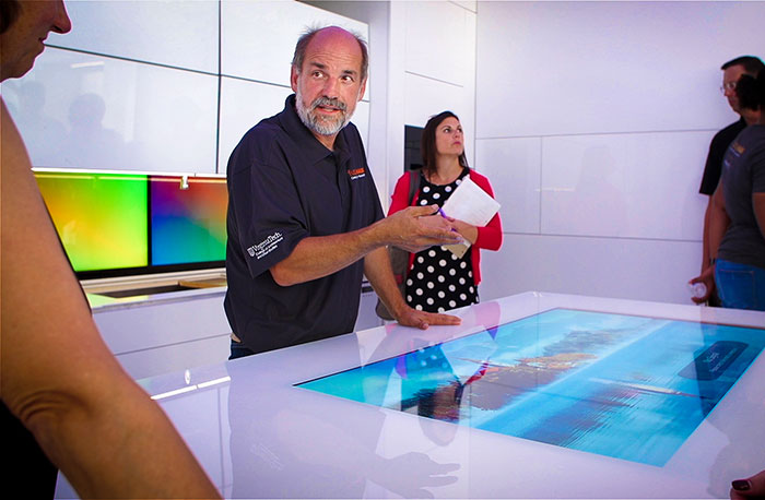 Joseph Wheeler, the lead of the FutureHAUS project, explains how the social hub in the kitchen works.