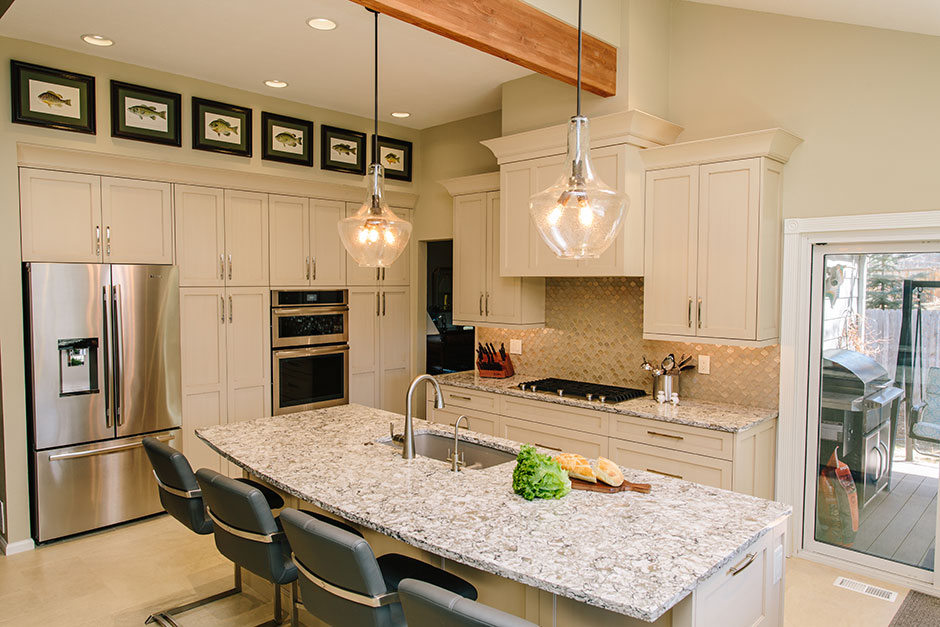 “The old kitchen had a low ceiling and a badly placed full-height wall,” said Highlands Ranch, Colo.-based Neiges, who explained that this wall blocked off the natural light that filtered in from the patio door and the sky lights above the breakfast area.